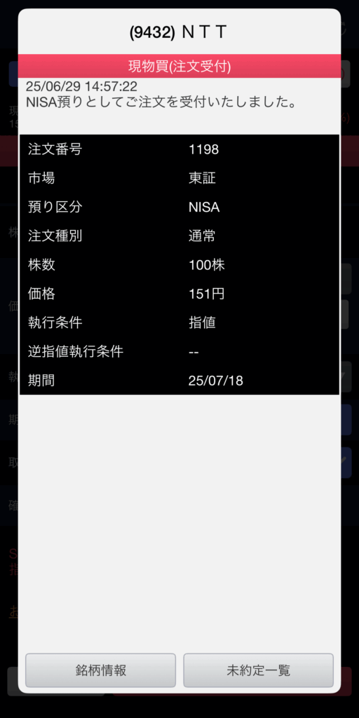 - 購入前には、銘柄コード、資金、NISA口座か課税口座かを必ず確認。