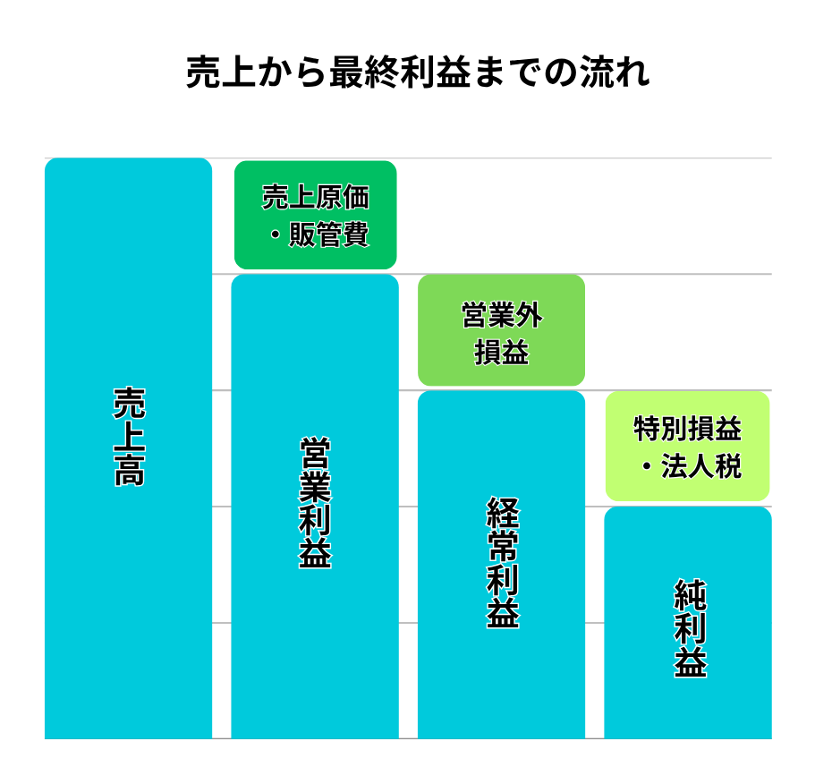 • 売上: 会社がどれだけ稼いだかの総額。成長の勢いを測る。